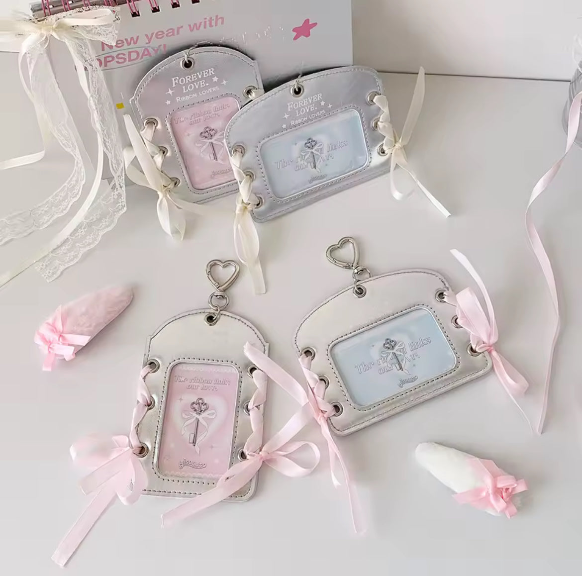 Holder llavero para Photocards color plateado con listones